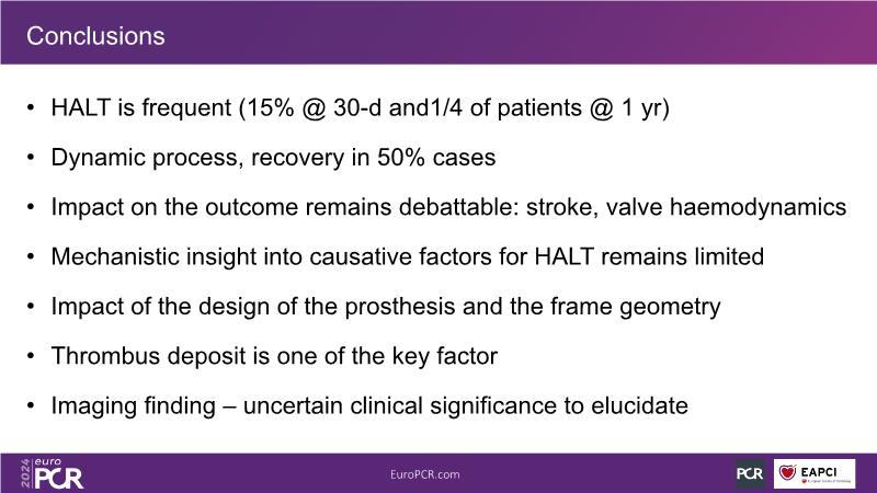 This session offers a practical guide to CT diagnosis of HALT/RLM, highlighting the importance of taking HALT/RLM seriously and providing insights into approaching HALT/HAM and the potential impact of pharmacotherapy. Gain knowledge on determining leaflet thickening and mobility through MSCT, receive updates on antithrombotic treatment strategies for HALT/RLM, and understand the potential clinical implications of HALT and RLM (HAM).