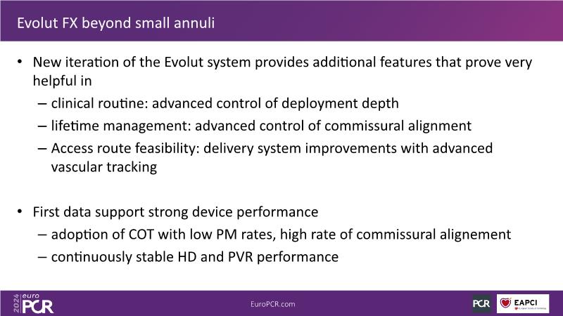 Watch this session to explore considerations for TAVI implantation in small annuli, gain insights into future lifetime management, learn about the benefits of FX technology and clinical evidence beyond small annuli, and witness a live case procedure showcasing the innovation of FX plus. This session is essential for discussing the significance of valve selection and its impact on patient outcomes, understanding the latest clinical outcomes of supra-annular TAVI vs balloon-expandable valve TAVI (SMART data), and examining how novel technologies enhance lifetime management and improve valve performance and durability.