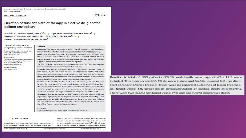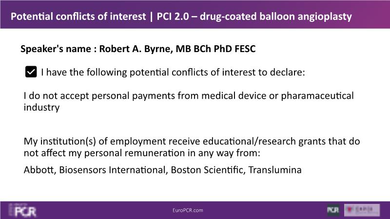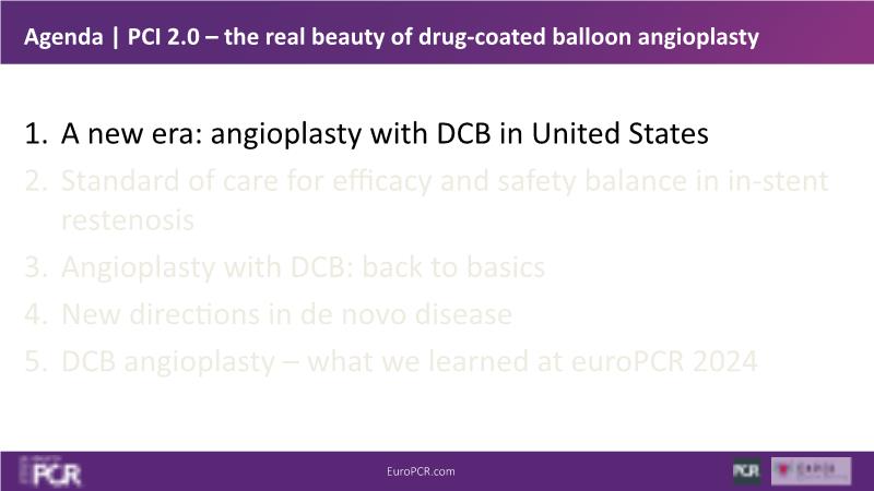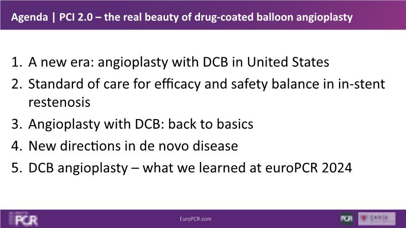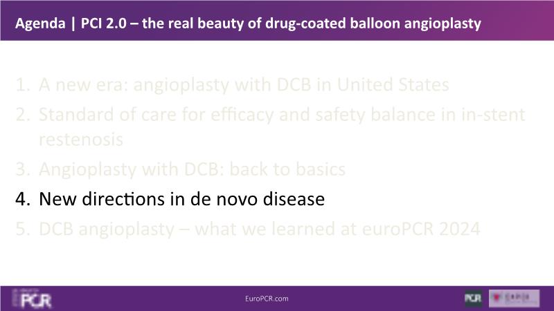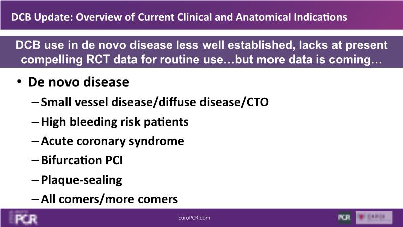 - To receive the latest clinical insights into the available data for DCB usage in de-novo lesions