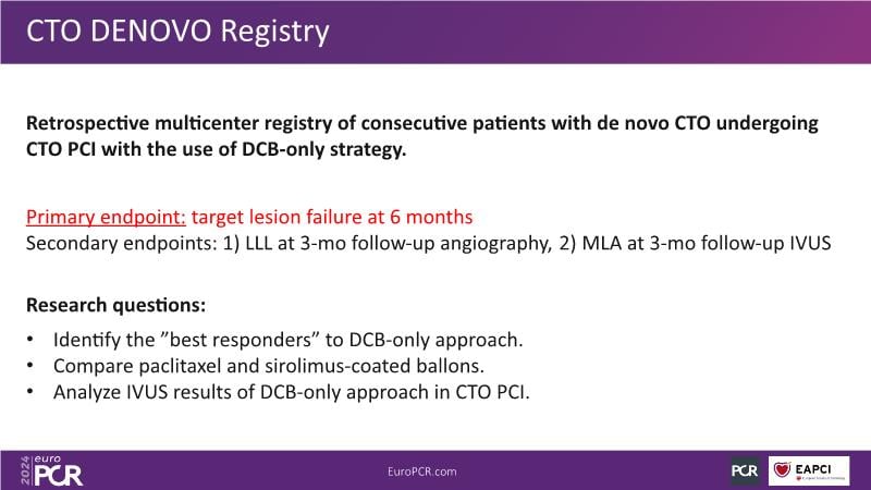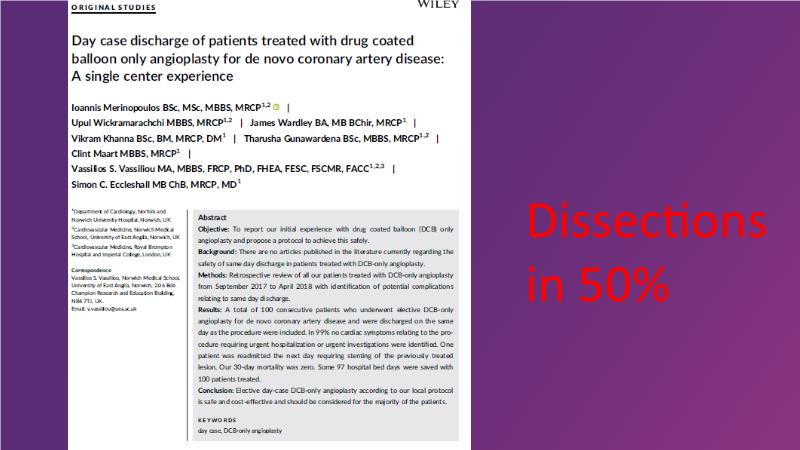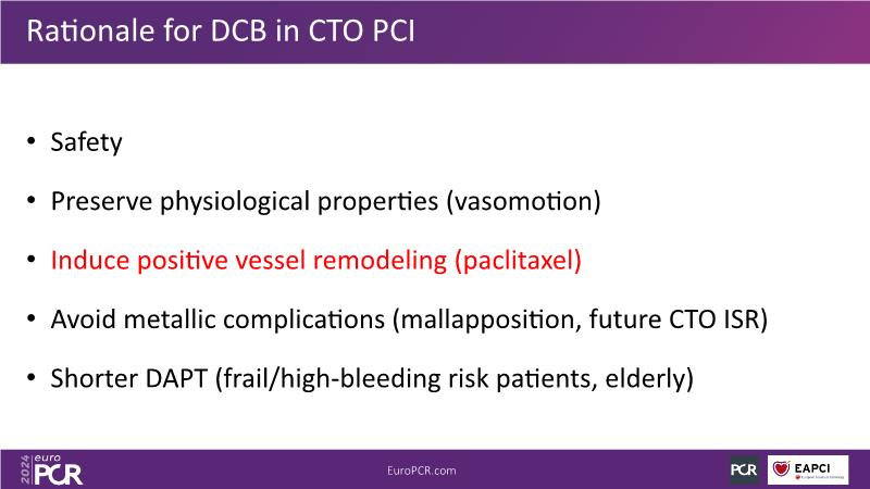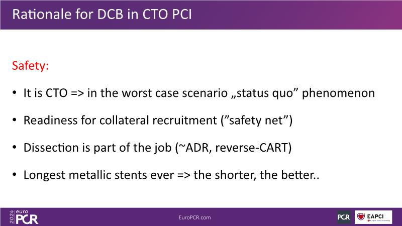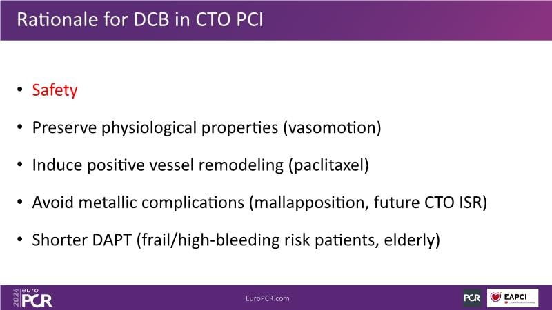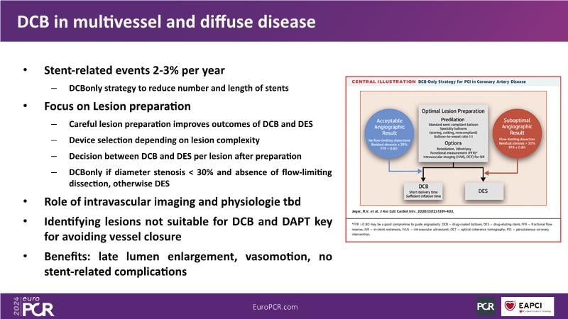 - To learn about practical experiences on DCB in large vessels, bifurcations, multivessel disease and CTO