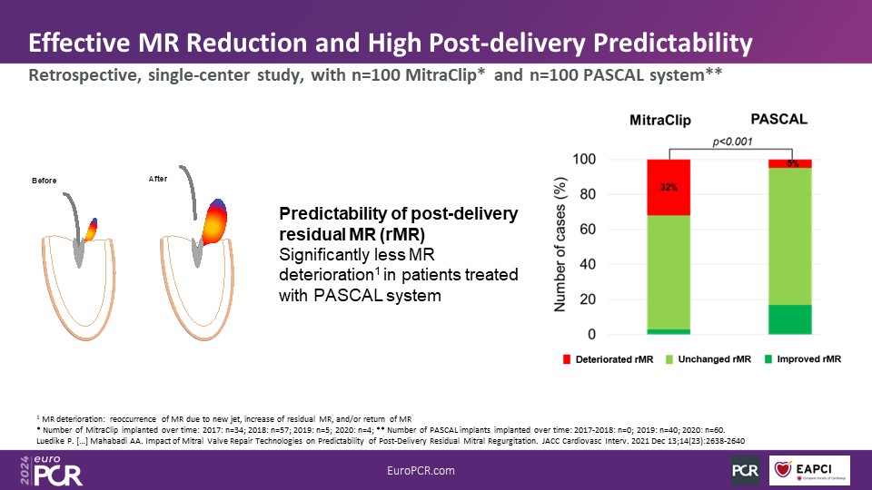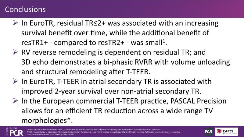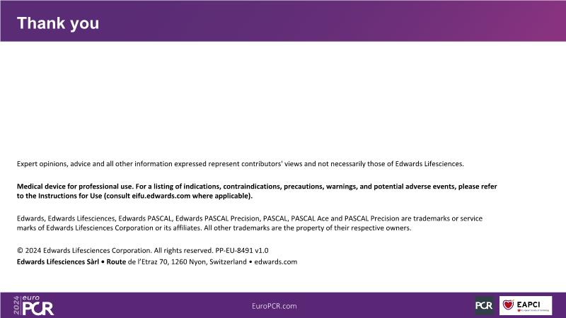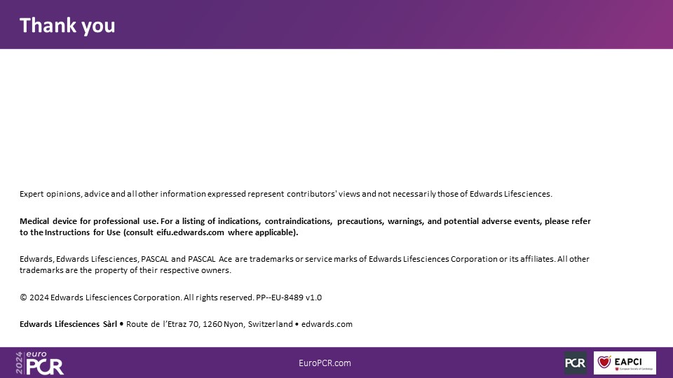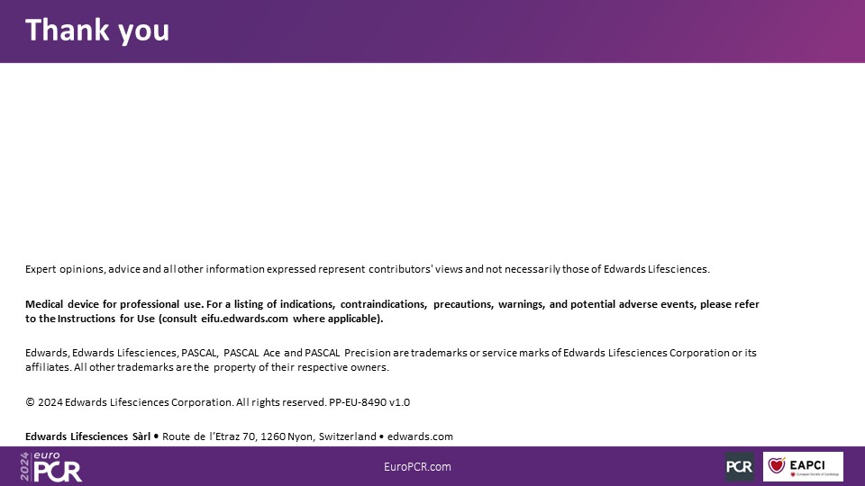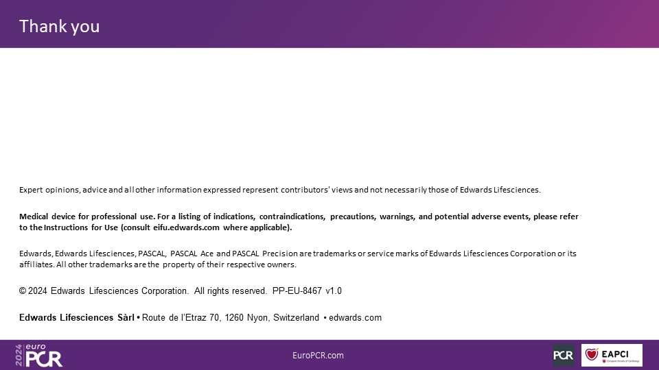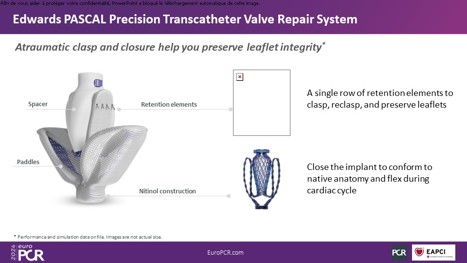 In this EuroPCR 2024 session, explore a transcatheter edge-to-edge mitral valve repair case, delve into discussions backed by simulation, evidence, and real-world cases to understand atraumatic clasp and closure techniques and predictable implant release. Additionally, gain insights into real-world evidence for tricuspid TEER from the EuroTR trial and beyond, and discover the versatility of implantation in various valve anatomies through the PASCAL Precision system simulation showcase.