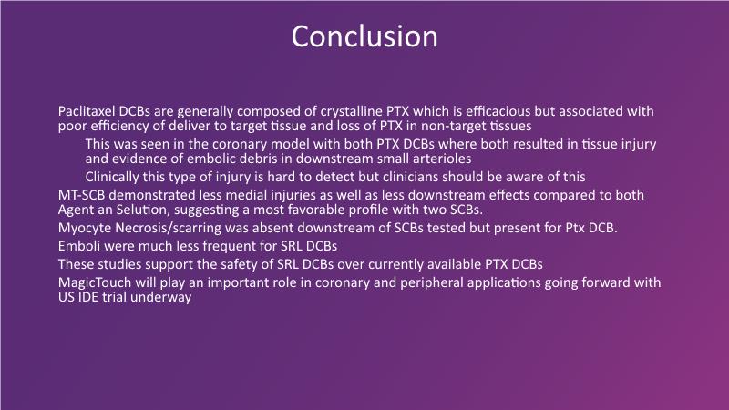 - To gain knowledge on the pre-clinical data on the MagicTouch SCB focusing on the safety and efficacy of the technology