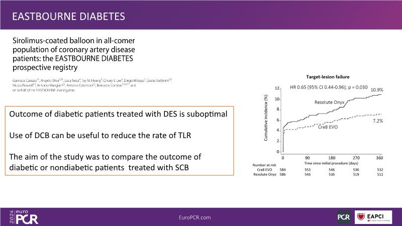 Browse this EuroPCR 2024 session to explore the safety and efficacy of sirolimus-coated balloons from pre-clinical data, review MagicTouch data from real-world populations with case-based examples, and learn about the MagicTouch sirolimus-coated balloon clinical programs. Discover insights and takeaways from the significance of the EASTBOURNE subgroups, and analyze the challenges and opportunities in PCI for diabetic patients.