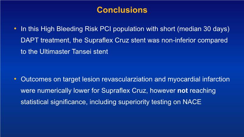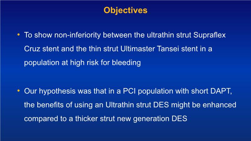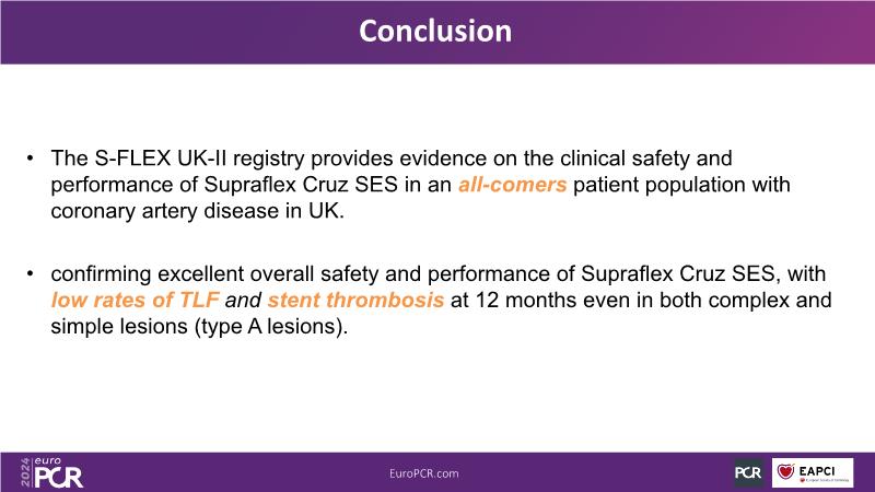 - To learn the safety and efficiency of Supraflex Cruz across all patient strata (real world clinical practice; randomised control trials; elderly; high bleeding risk, diabetes)