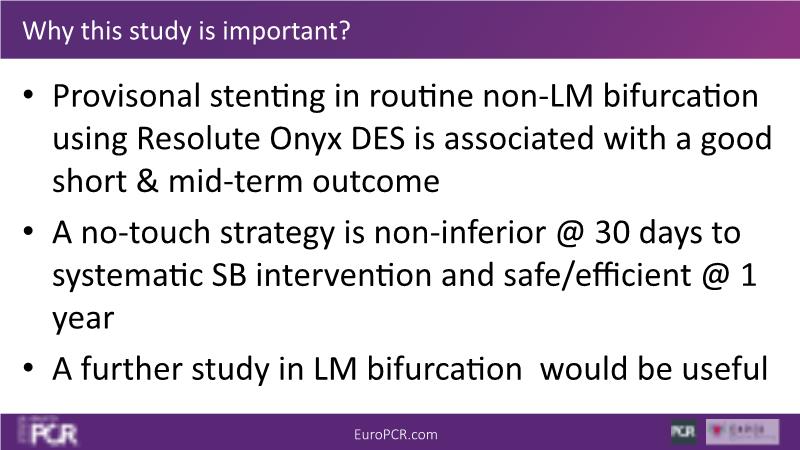 - To understand the benefit of side branch intervention in provisional stenting (KISS 1Y)