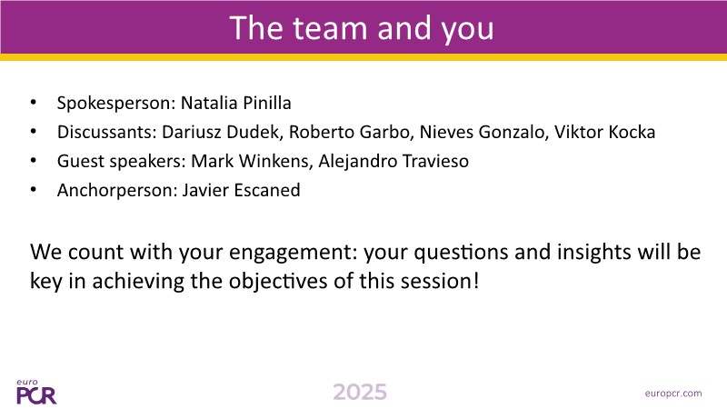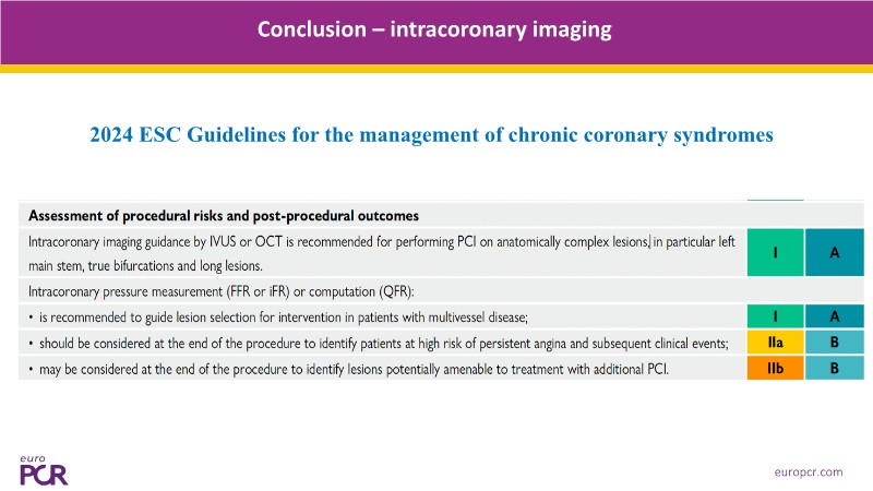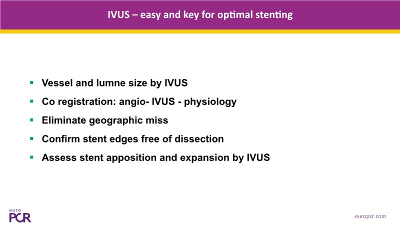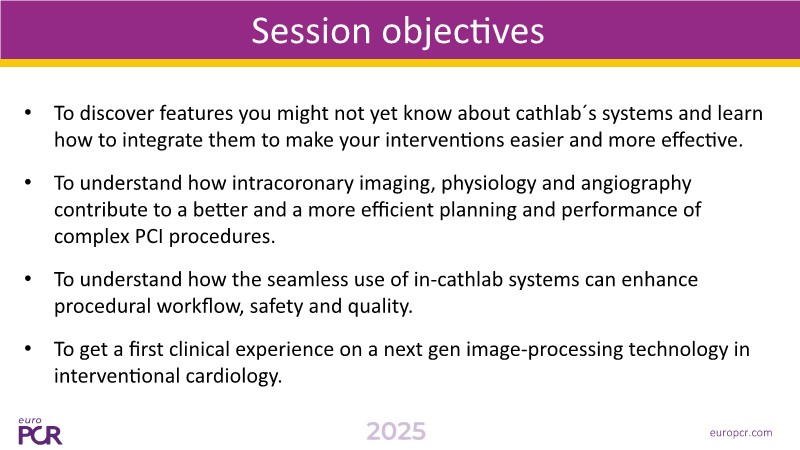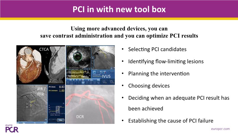 - To understand how intracoronary imaging, physiology and angiography contribute to a better and a more efficient planning and performance of complex PCI procedures