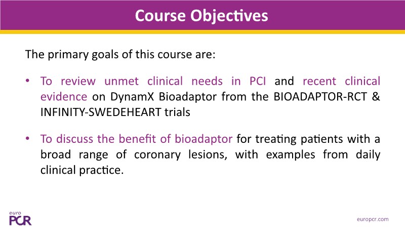 - To learn the unique design characteristics of Bioadaptor and how that could improve PCI clinical outcomes