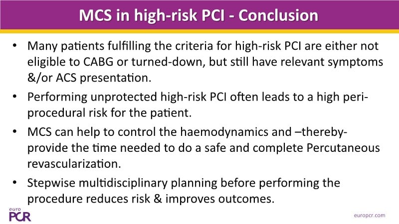 - To see latest data and EAPCI consensus on high-risk PCI in patients unsuitable for surgery