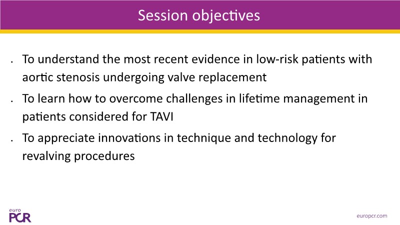 - To understand the most recent evidence in low-risk patients with aortic stenosis undergoing valve replacement