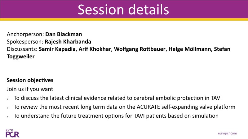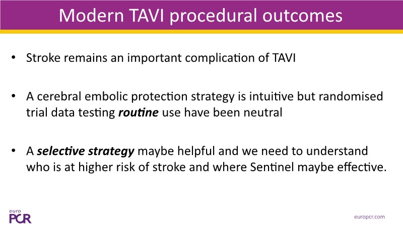 - To discuss the latest clinical evidence related to cerebral embolic protection in TAVI