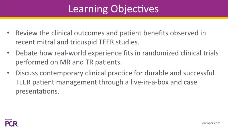 - To discuss contemporary clinical practice for durable and successful TEER patient management