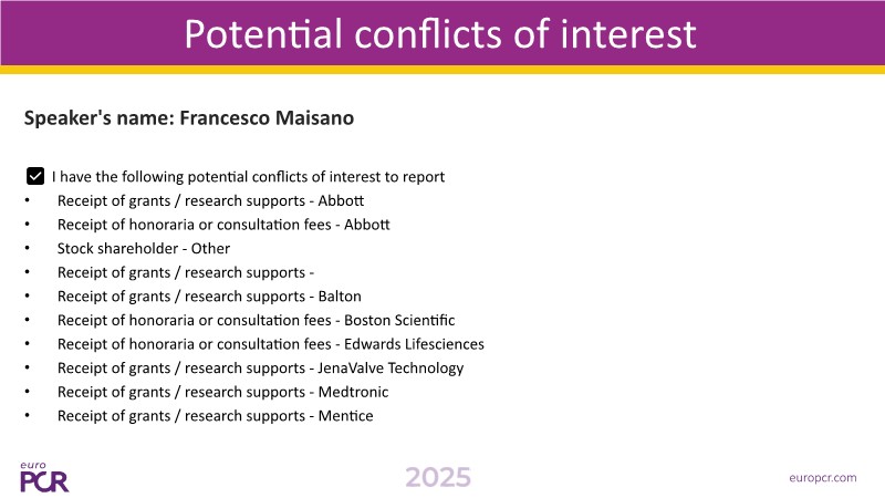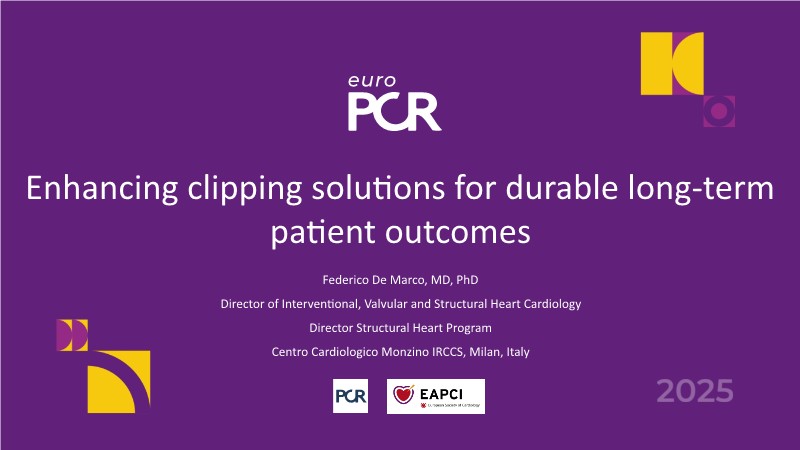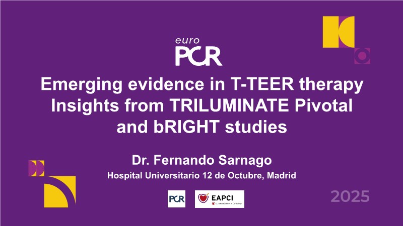 This EuroPCR 2025 session delves into the evolving strategies for mitral and tricuspid TEER, backed by fresh data and real-world insights. Review the latest evidence from the TRILUMINATE Pivotal and bRIGHT studies, and see how TR phenotypes can guide patient selection for more durable outcomes. Discover where RESHAPE-HF2 fits in today’s post-COAPT landscape and what it means for SMR management. The session also includes two illustrative MitraClip cases—one with a late referral—plus a focused look at clinical practice and long-term management, to help optimise your approach to structural heart care.