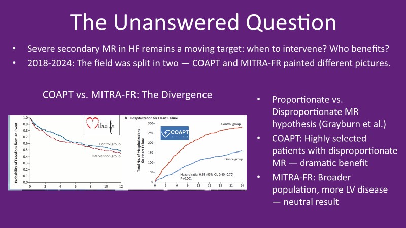 - To debate how real-world experience fits in randomised clinical trials performed on secondary mitral regurgitation and STR patients