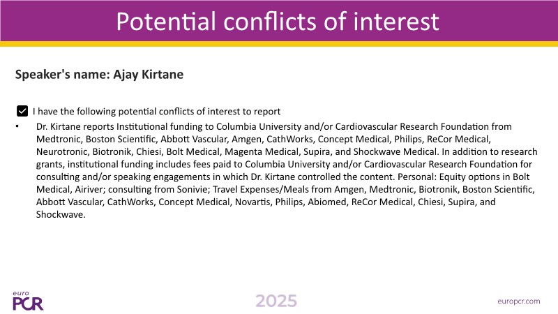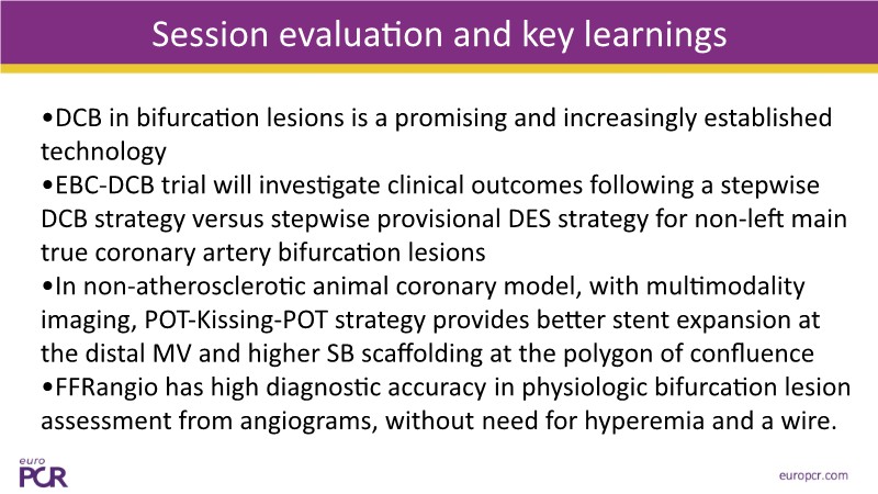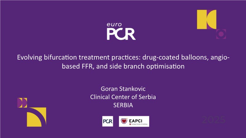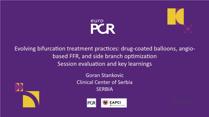 Explore how bifurcation treatment is evolving with the integration of drug-coated balloons, angio-based FFR, and advanced side branch optimisation. This EuroPCR 2025 session highlights why DCB is gaining traction for bifurcation lesions and introduces the upcoming EBC-DCB trial comparing a stepwise DCB strategy to provisional DES in non-left main true bifurcations. See how the POT-kissing-POT technique improves outcomes in a non-atherosclerotic model, and learn why FFRangio is proving to be a powerful wire-free tool for physiologic assessment. Hit play and stay at the forefront of bifurcation care!