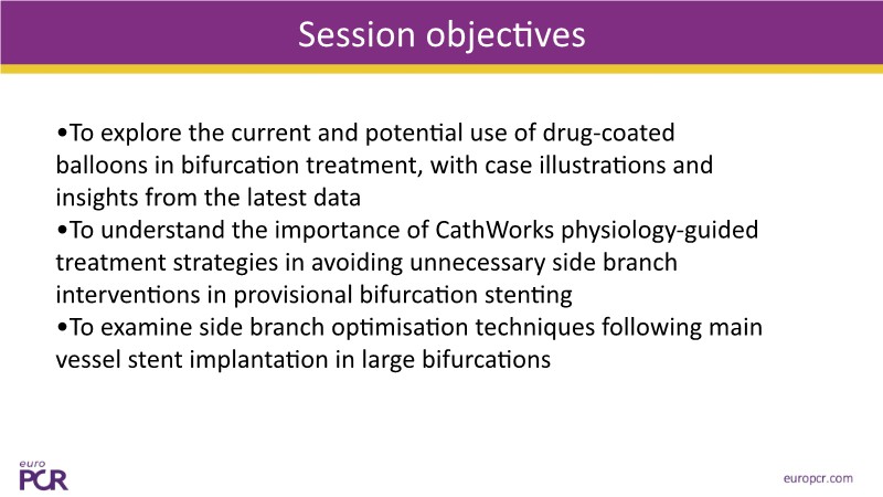 - To explore the current and potential use of drug-coated balloons in bifurcation treatment, with case illustrations and insights from the latest data