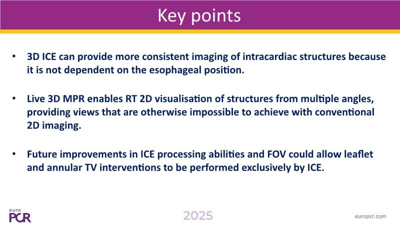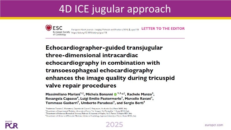 Learn how 4D intracardiac echocardiography (ICE) is reshaping structural heart procedures. This EuroPCR 2025 session takes you through the latest in imaging technology—highlighting the benefits of 4D ICE and AI integration in improving the safety, precision, and efficiency of mitral and tricuspid interventions. From valve repair to replacement, see how these tools are being used in real-world practice and hear directly from experienced operators how they are transforming procedural workflows.