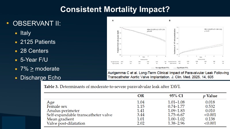 - To understand the links between paravalvular leak, durability, and survival after TAVI
