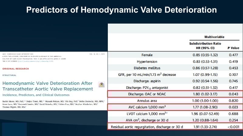 Follow the discussion to understand the impact of residual leak and permanent pacemaker implantation on valve durability and survival, and learn why anticipating THV-in-THV strategies during the first procedure is key to optimising patient care in the long term.