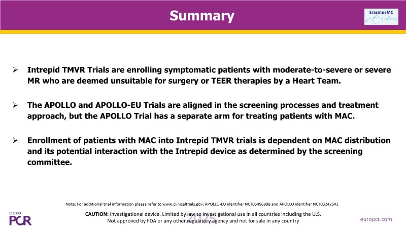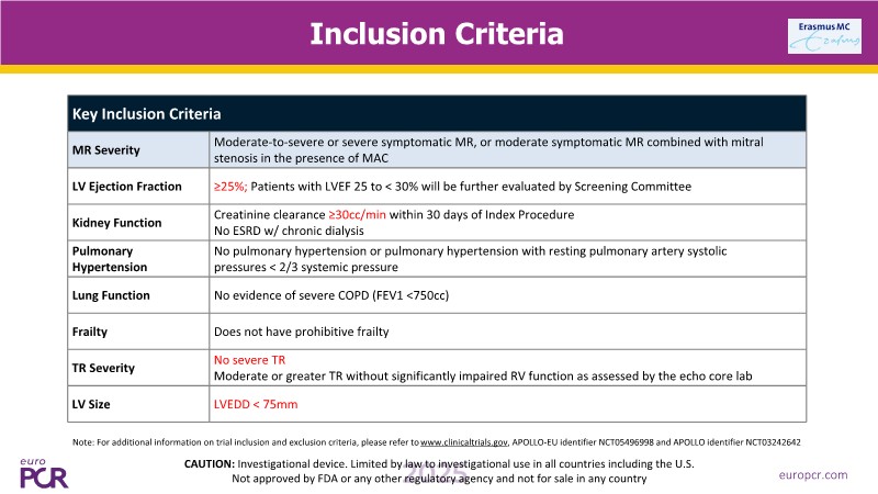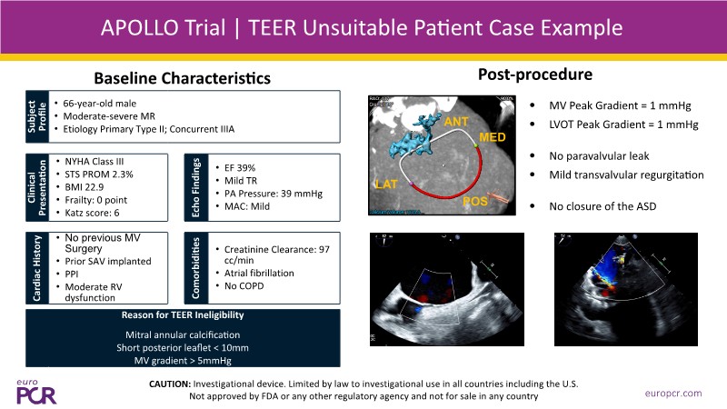 - To gain insights on the APOLLO TMVR trial