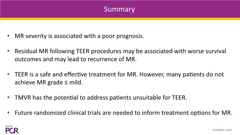 This EuroPCR 2025 session highlights the evolving role of transcatheter mitral valve replacement, focusing on the clinical potential of mitral regurgitation elimination. Get an overview of the current status of the Intrepid TMVR programme, learn about the transition to the 29Fr transfemoral system, and explore how patient screening—especially in the presence of mitral annular calcification—impacts procedural planning. Real-world case reviews from the APOLLO-EU trial offer practical insights into how this next-generation system is being applied in Europe today.