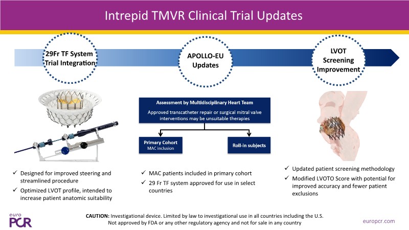 - To learn about early APOLLO EU trial experience and the Intrepid 29Fr TMVR system
