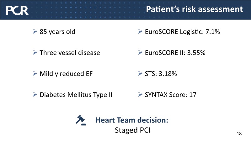 - To reflect about optimal PCI strategy for high bleeding risk patient with multivessel disease