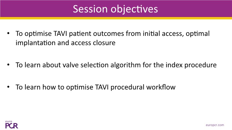 - To optimise TAVI patient outcomes from initial access, optimal implantation and access closure