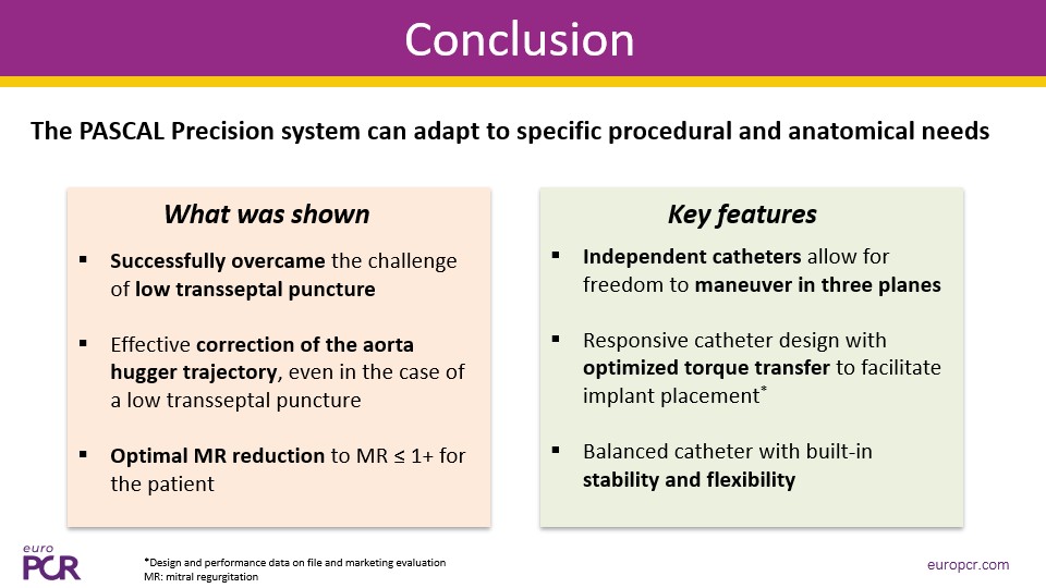 - To appreciate the key features of the PASCAL Precision system that help you navigate even challenging mitral or tricuspid anatomies