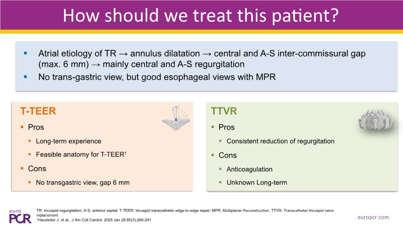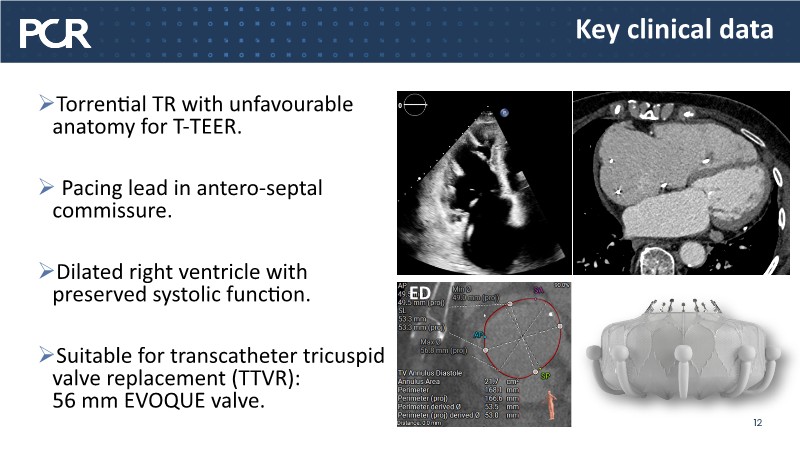 This interventional session explores therapeutic strategies for mitral and tricuspid regurgitation, focusing on the clinical decision-making process between repair and replacement. Through two clinical cases, a 78-year-old male patient with severe degenerative mitral regurgitation and an 88-year-old female patient with atrial functional mitral regurgitation, experts review available transcatheter options and their procedural integration. The session features a presentation of several innovative devices, including the PASCAL Precision system, the EVOQUE system, and the SAPIEN M3 platform, highlighting their role in contemporary valve interventions.