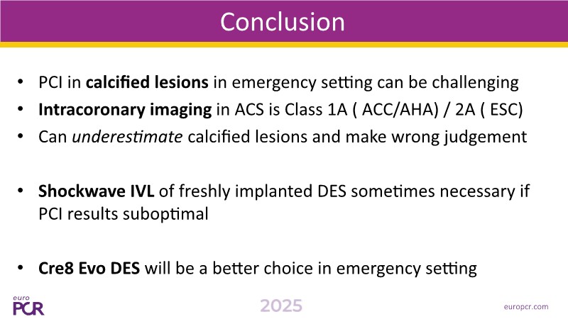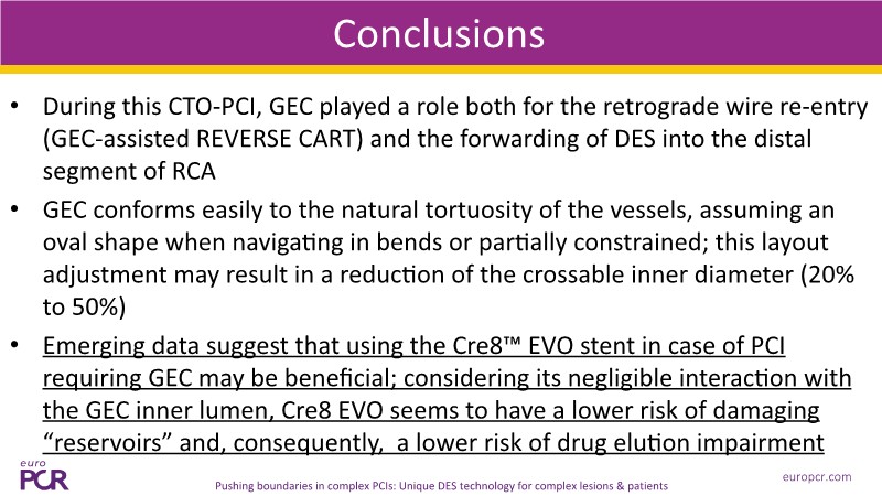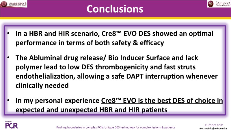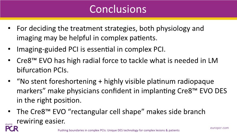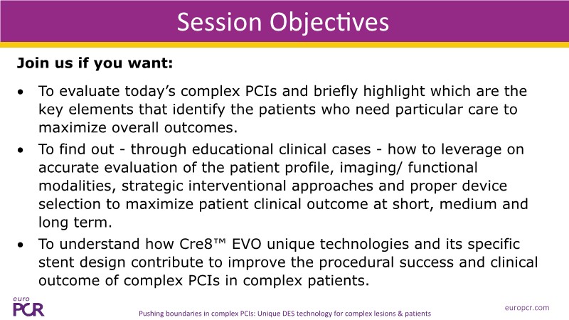 - To understand how Cre8 EVO unique technologies and its specific stent design contribute to improve the procedural success and clinical outcome of complex PCIs in complex patients