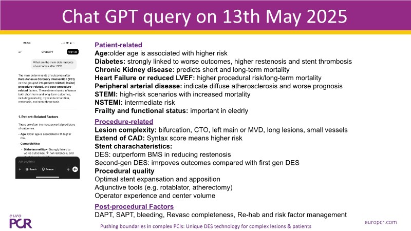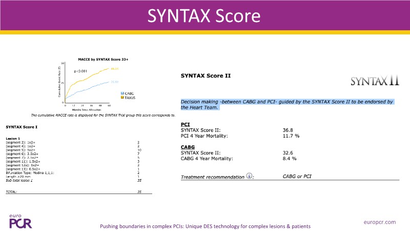 - To evaluate today’s complex PCIs and briefly highlight which are the key elements that identify the patients who need particular care to maximise overall outcomes