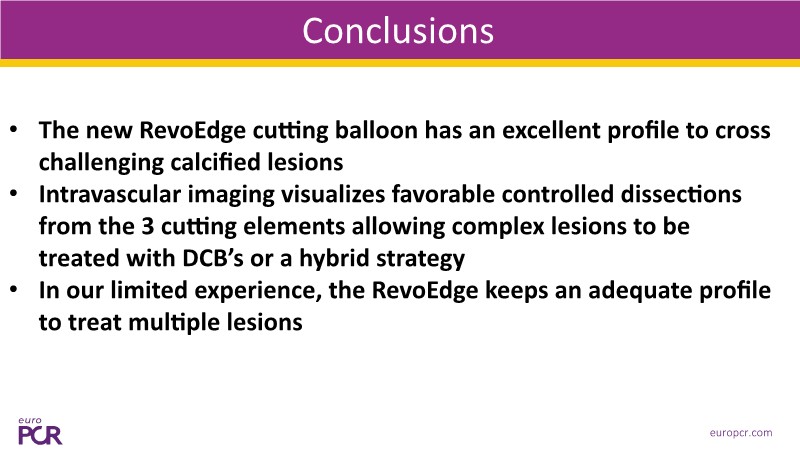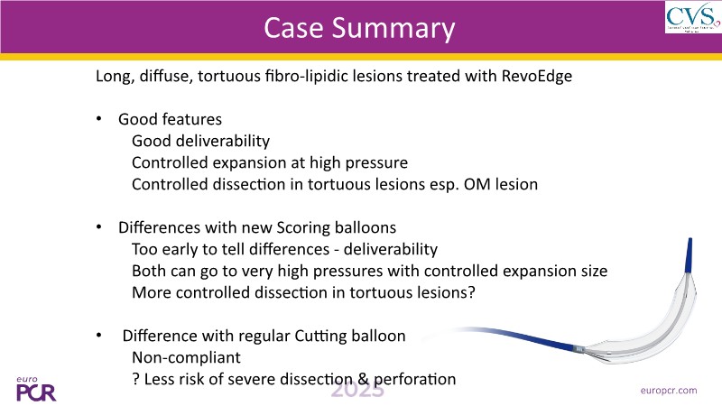 - To learn about the clinical benefits and tips and tricks of using RevoEdge high pressure cutting balloon in different types of complex lesions through case-based discussion