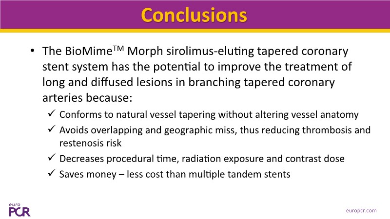 - To learn about the relevance of dedicated bifurcation and long tapered stents in managing complex PCI
