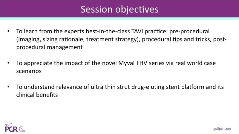 - To learn from the experts best-in-the-class TAVI practice: pre-procedural (imaging, sizingrationale, treatment strategy), procedural tips and tricks, post-procedural management