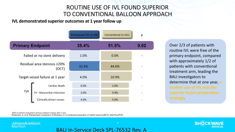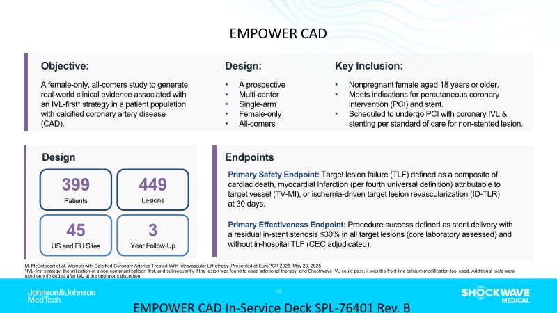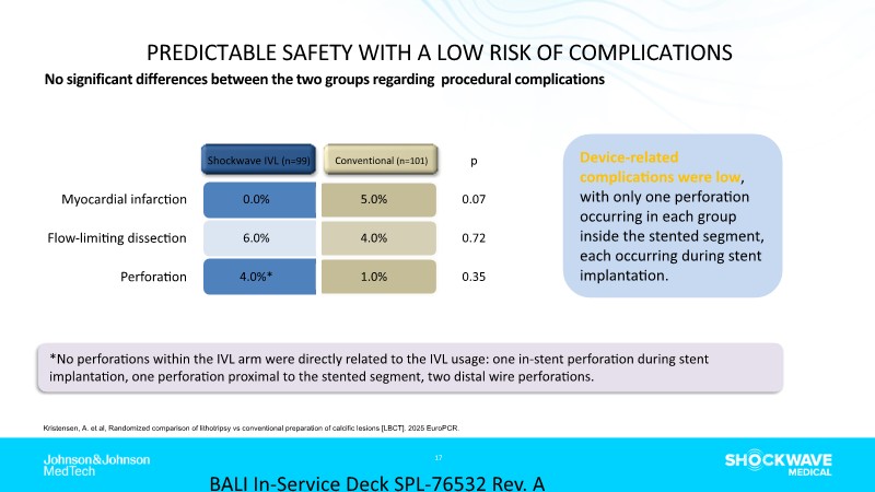 - To present updated global clinical data supporting safety and efficacy of Shockwave intravascular lithotripsy