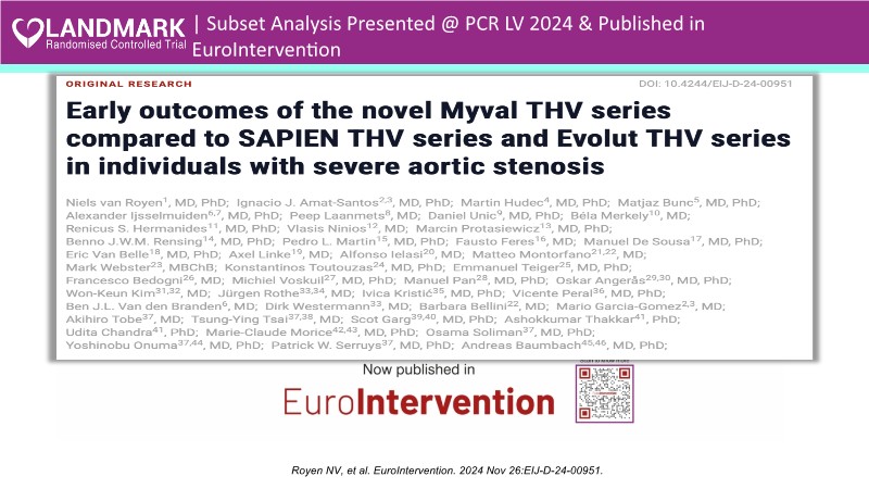 Join this comprehensive session to explore the Myval transcatheter heart valve series, featuring the latest clinical updates from two large randomized controlled trials—Landmark and Compare TAVI. Learn from real-world experiences, including recorded cases, and understand how these innovations translate to complex patient demographics in daily TAVI practice.