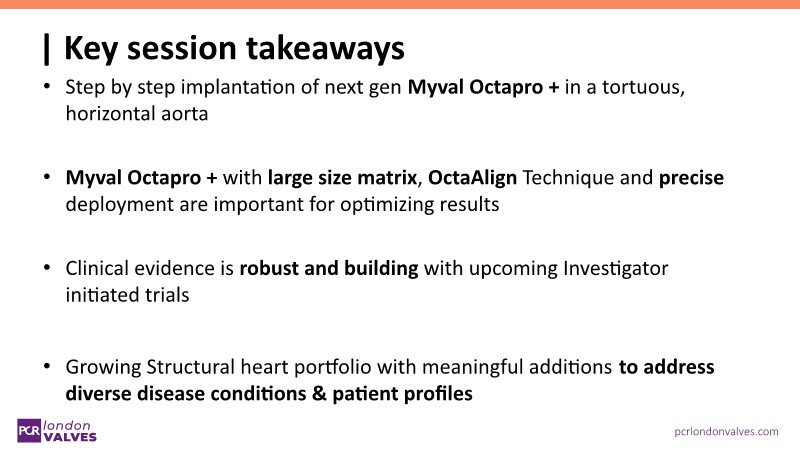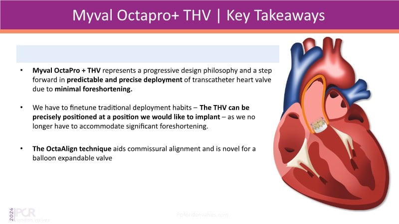 Discover how the latest Myval transcatheter heart valve (THV) innovations are shaping TAVI outcomes. This PCR London Valves 2025 session highlights the clinical evidence behind the next-gen Myval THV series, best practices for implantation, and upcoming innovations set to improve patient care. Learn step-by-step techniques for deploying Myval Octapro + in challenging anatomies, how the large size matrix and OctaAlign method optimise results, and how the growing Myval portfolio is addressing diverse patient profiles. A practical guide to elevating your structural heart interventions with precision and confidence.