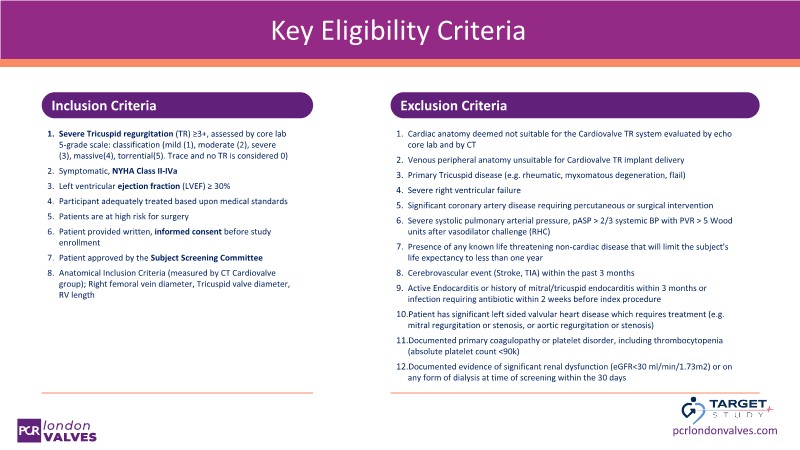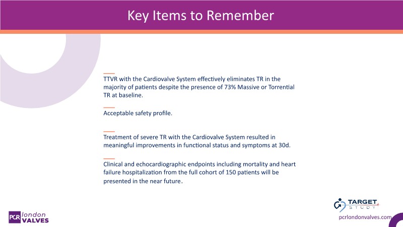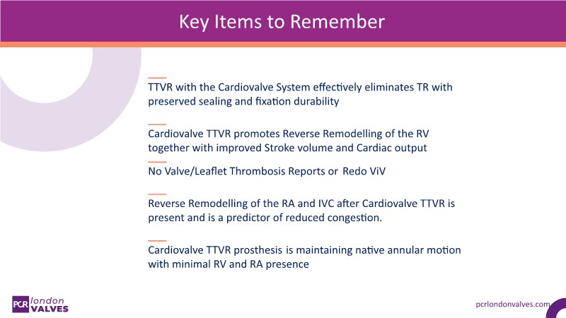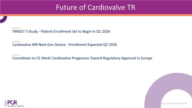 This session highlights the features and procedural steps of the next-generation Cardiovalve systems for tricuspid and mitral valve replacement. It reviews interim results from the TARGET study, emphasizing echocardiographic findings and reverse remodeling effects, and discusses best practices for patient selection and the learning pathway to optimize transcatheter tricuspid valve replacement (TTVR) outcomes.