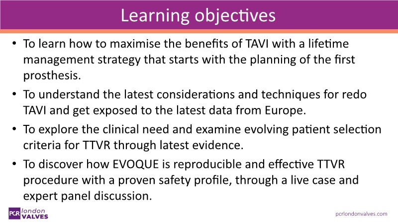 - To learn how to maximise the benefits of TAVI with a lifetime management strategy that starts with the planning of the first prosthesis