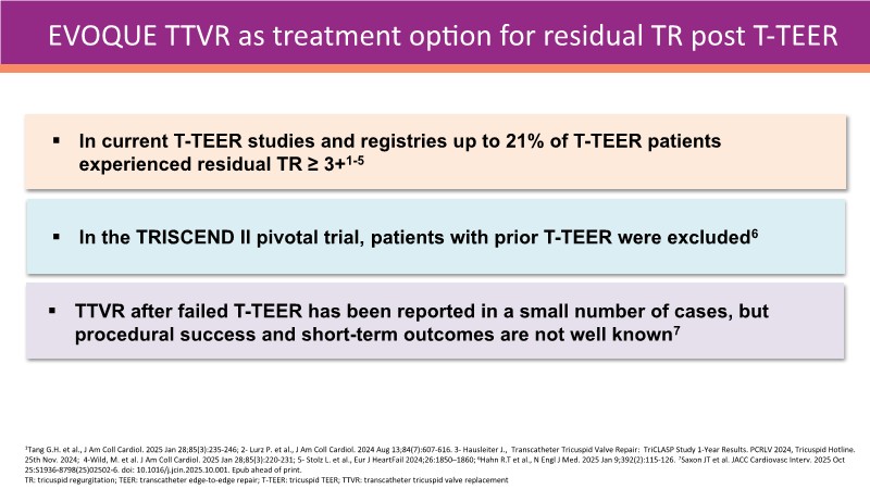 - To explore the clinical need and examine evolving patient selection criteria for TTVR through latest evidence