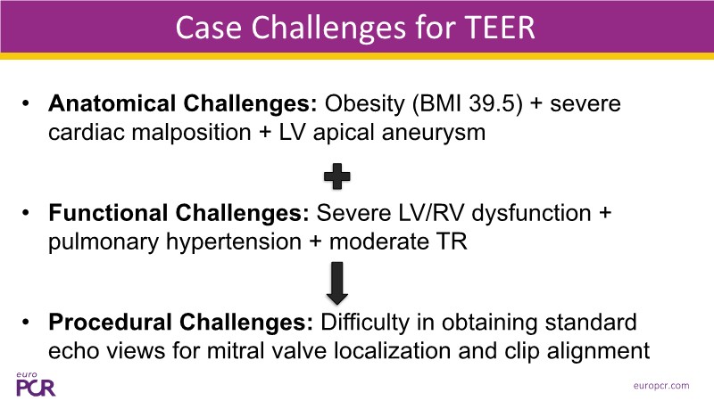 - To discover tips and techniques for mitral TEER in patients with challenging anatomy and difficult imaging