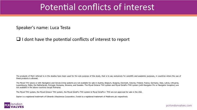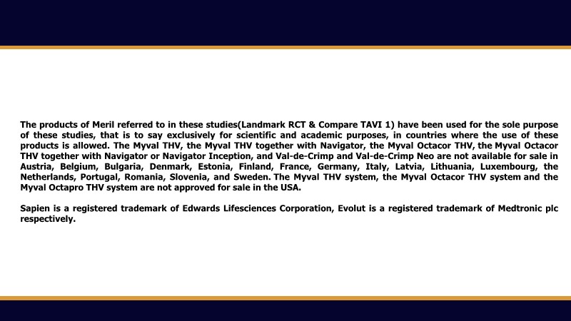 - To hear about pivotal trials of Myval THV series and their relevance in clinical practice