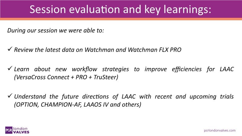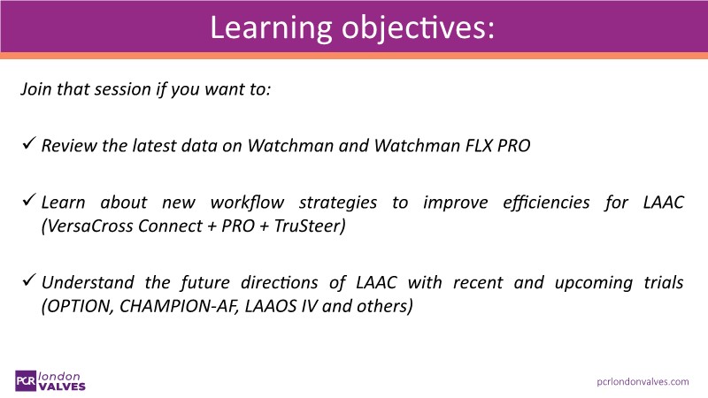 - To review the latest data on WATCHMAN FLX PRO and VersaCross Connect - HEAL LAA and subanalysis