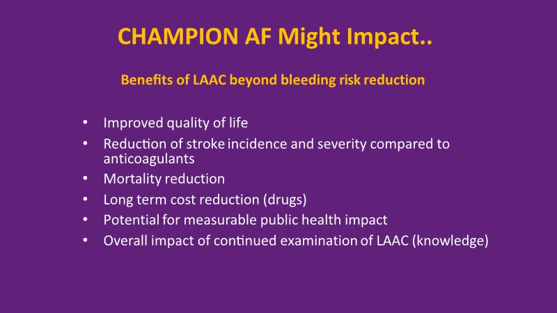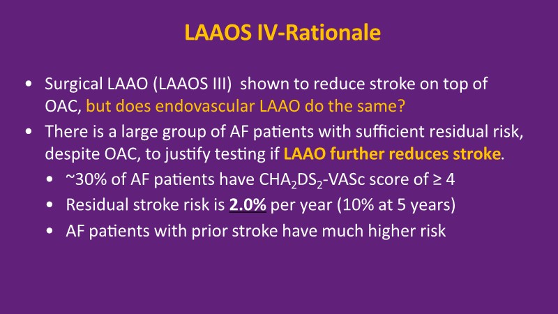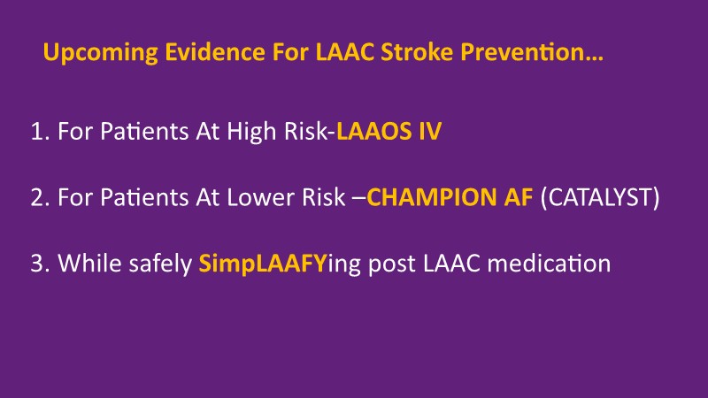 - To discuss the upcoming new clinical trials - CHAF + LAAOS IV