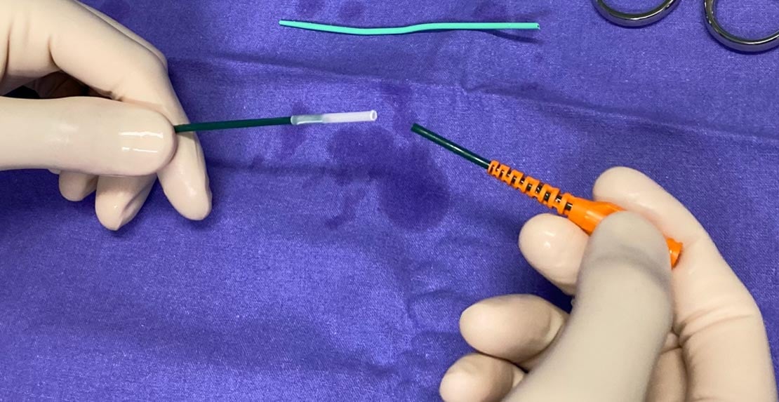 After a proper evaluation of the length you desire to shorten your GC, you cut the GC around 2 cm starting from the proximal part using sterile scissors.