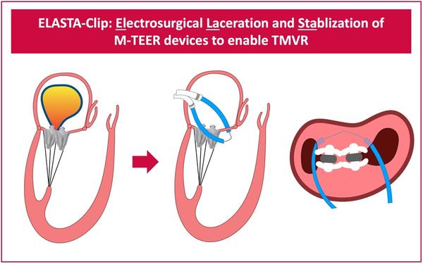 Repeat M-TEER procedures are technically challenging and often anatomically unfeasible. Electrosurgical LAceration and STAbilization of Clip / M-TEER devices (ELASTA-Clip) has been introduced as a novel innovative technique to intentionally detach an M-TEER device from the anterior mitral valve leaflet to enable subsequent transcatheter mitral valve replacement (TMVR)2.