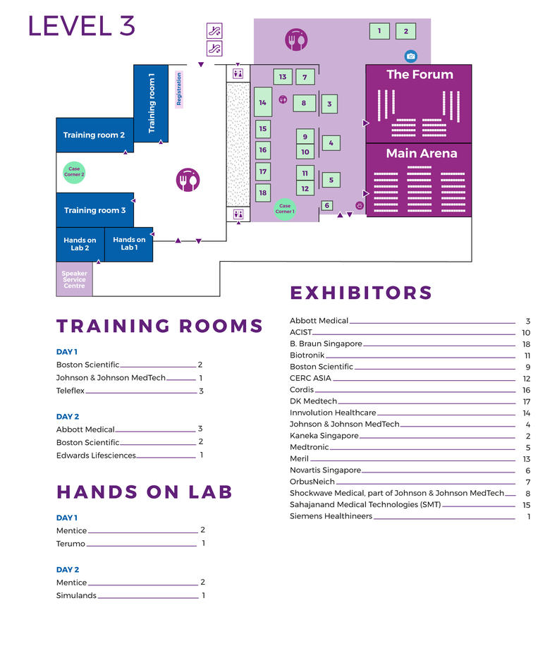 Enclosed is the floor plan of AICT-AsiaPCR 2025. This floor plan includes : 2 sessions rooms, the exhibition area (booths), 3 Training rooms, 2 case corners and 2 rooms dedicated to hands-on sessions. This layout offers great visibility to all Industry Partners.