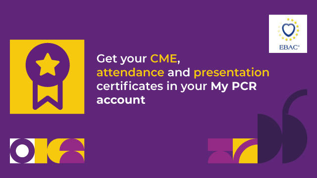Each participant should claim only hours of credit that have actually been spent in the educational activity. Your certificate will be available for download in your My PCR account soon after the course. Live sessions and their subsequent replays (available under the platform's Watch Videos section) are accredited when watched within 14 days post-course.This activity has been accredited by the European Board for Accreditation of Continuing Education for Health Professionals (EBAC®).