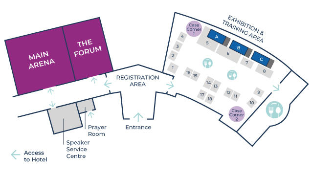 Taking place in the Grand Hyatt, Dubai, GulfPCR-GIM 2025 exhibition area offers great visibility to all Industry Partners. The exhibition area includes a central buffet, 2 open case corners with a headphone system, 3 training rooms and a dedicated PCR studio for interviews and session wrap-ups.