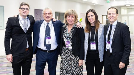 Marianna Adamo, Julien Dreyfus, Francesco Maisano, Fabien Praz and Marta Sitges are surrounded by approx. 90 enthusiastic healthcare practitioners - all working to facilitate innovation and the development of up-to-date clinical care for patients with tricuspid valve disease.